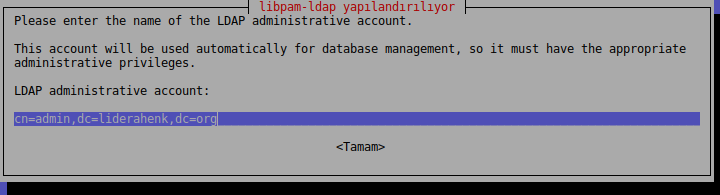 Bu bilgiler daha önce libnss-ldap paketi için girilmişti, şimdi libpam-ldap için girilecek.