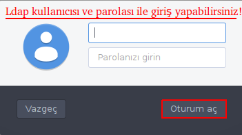 Ldap ile oturum açılmak istenen kullanıcıda;