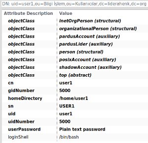 objectClass'ları eklenmiş olmalıdır. Örnek kullanıcı görüntüsü aşağıdadır.
