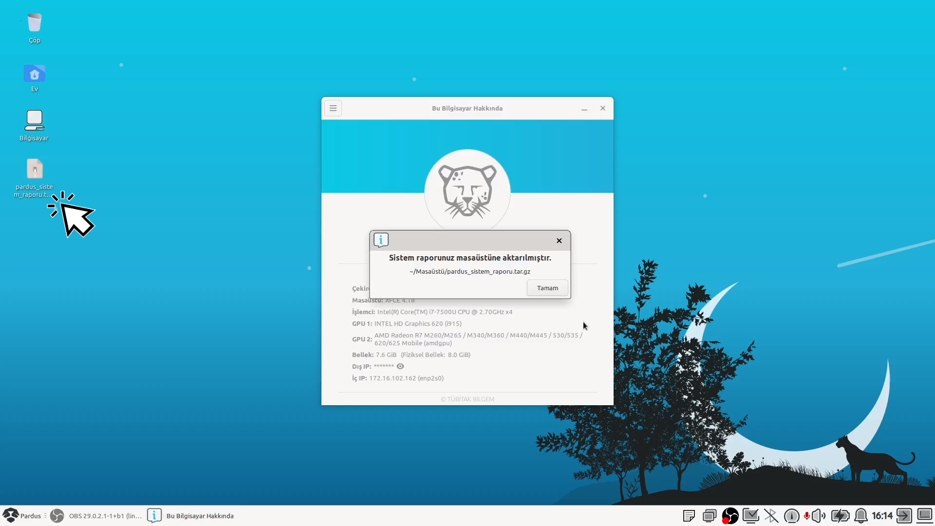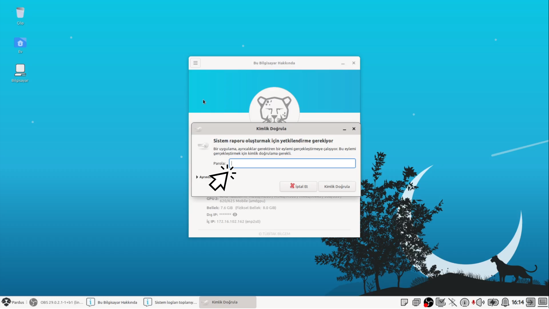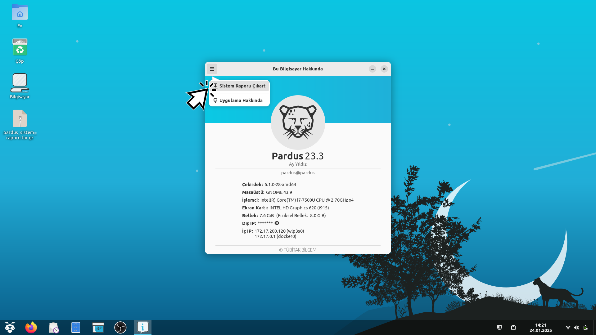 Pardus işletim sistemi kullanıyorsanız sistem raporunu "Pardus Hakkında" uygulaması ile kolaylıklar oluşturabilirsiniz.