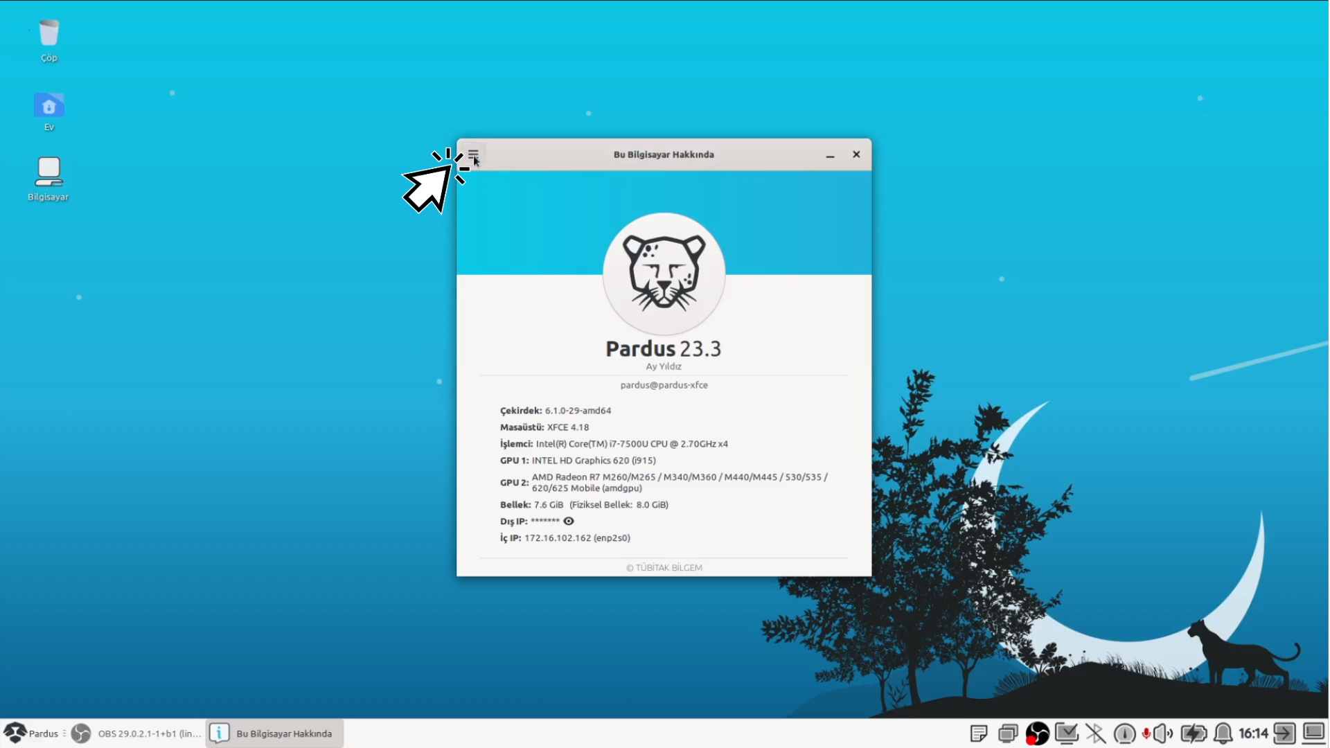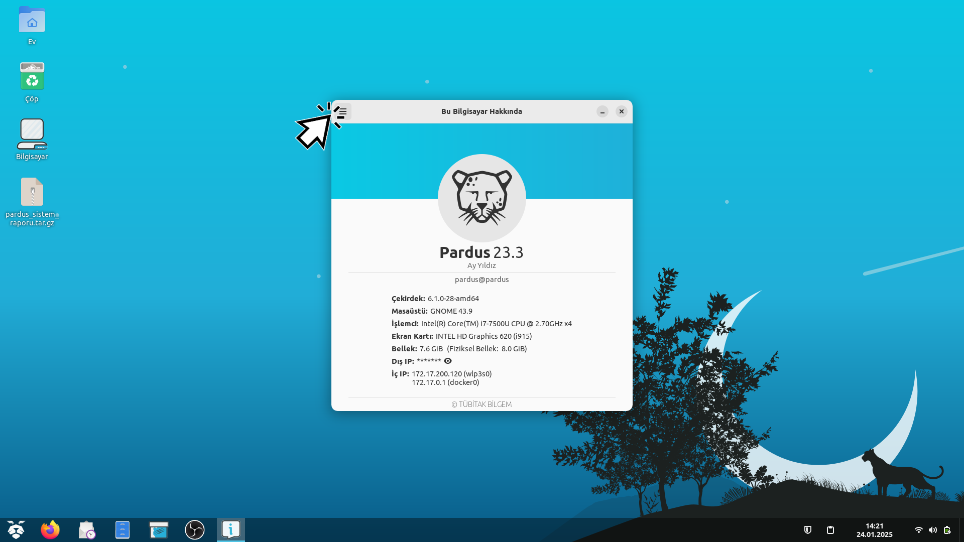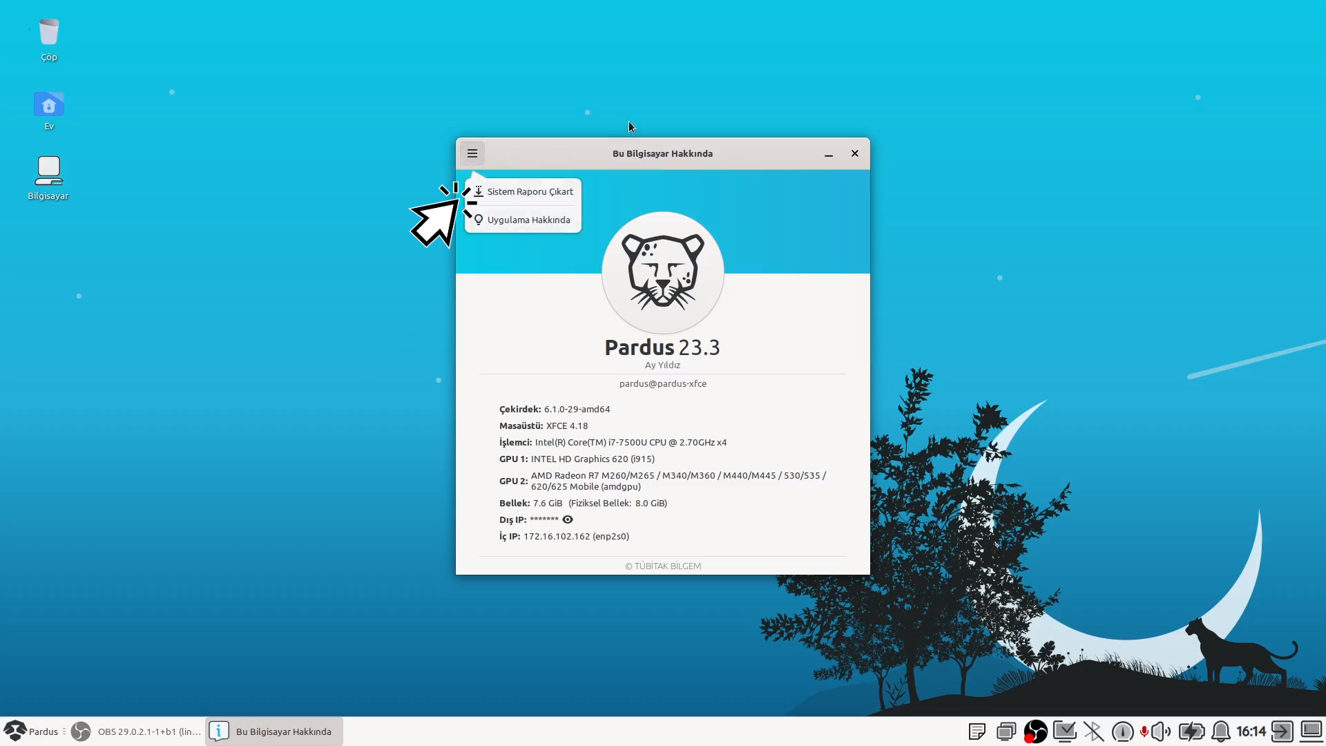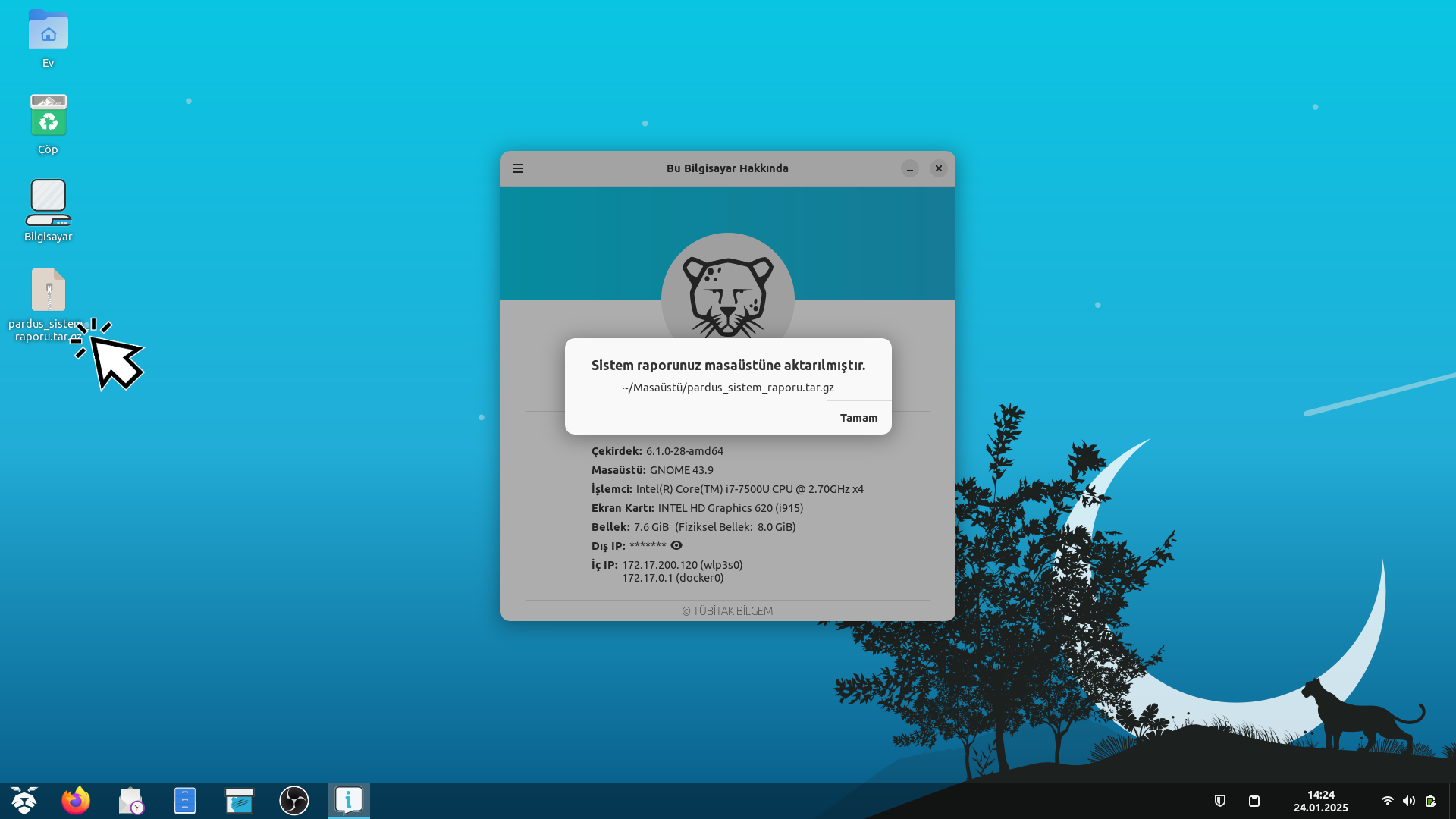Pardus işletim sistemi kullanıyorsanız sistem raporunu "Pardus Hakkında" uygulaması ile kolaylıklar oluşturabilirsiniz.