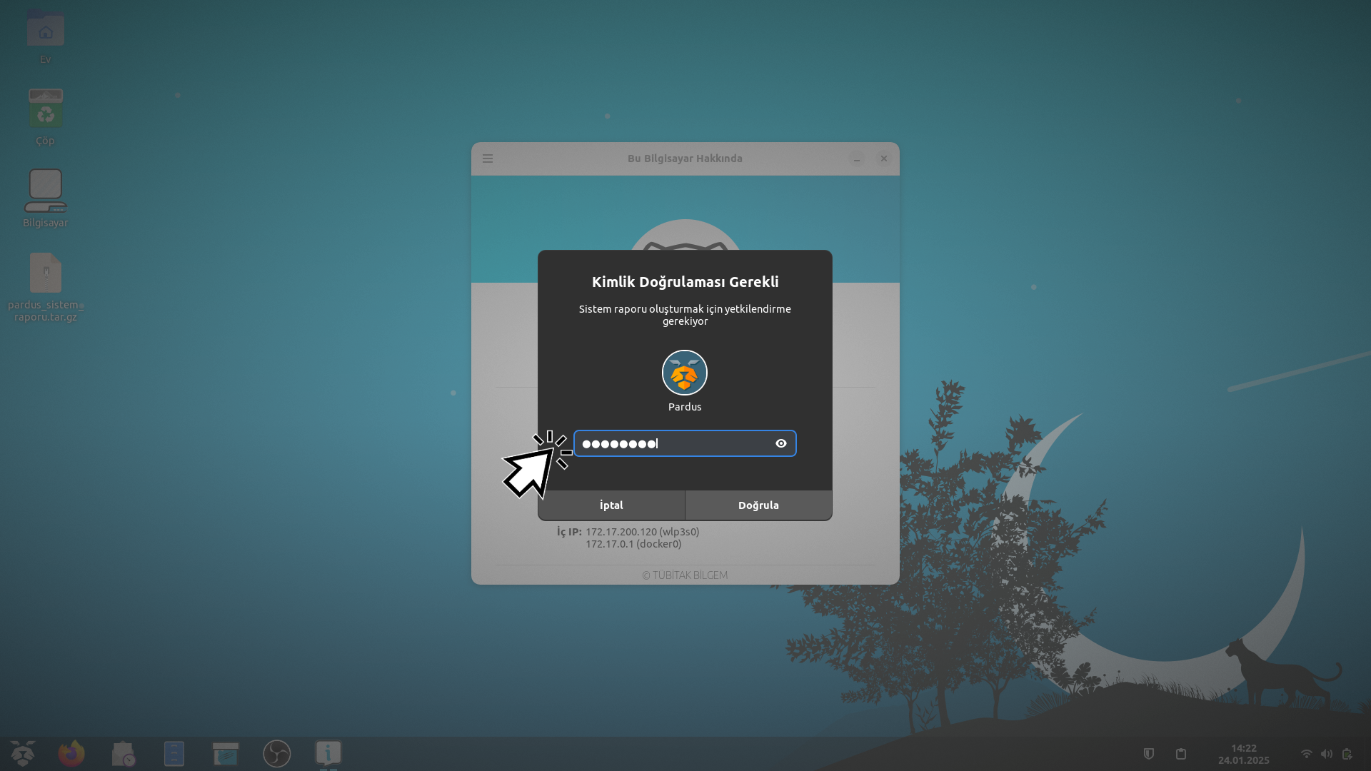 Teknik bir problem yaşadığınızda bunun çözümü için Pardus Yardım Masasına açtığınız taleplere oluşturacağınız sistem raporu dosyasını eklemeniz sorunu çok daha kolaylıkla gözlemlememize yardımcı olacaktır.